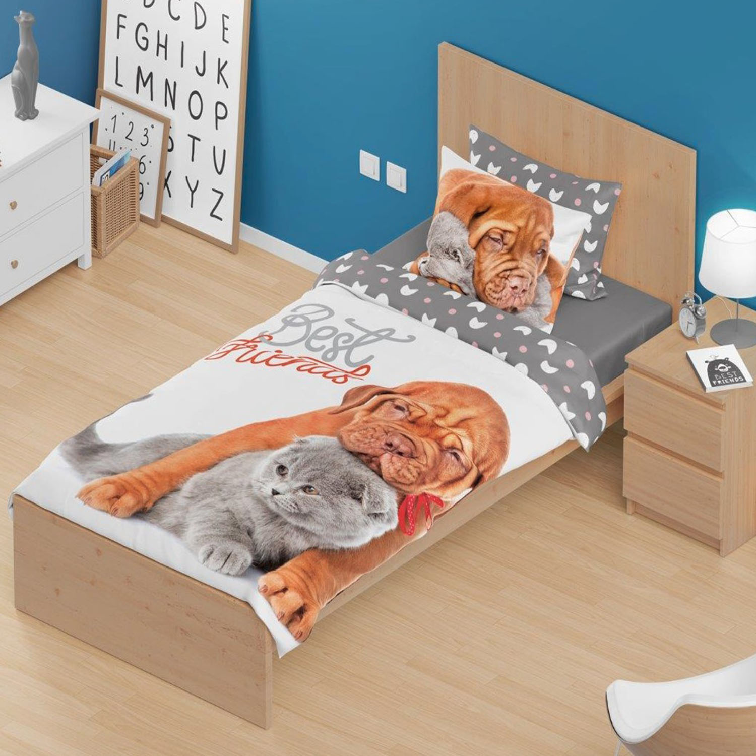 Pościel bawełna 140×200+1p70x90 Kotek i piesek 013