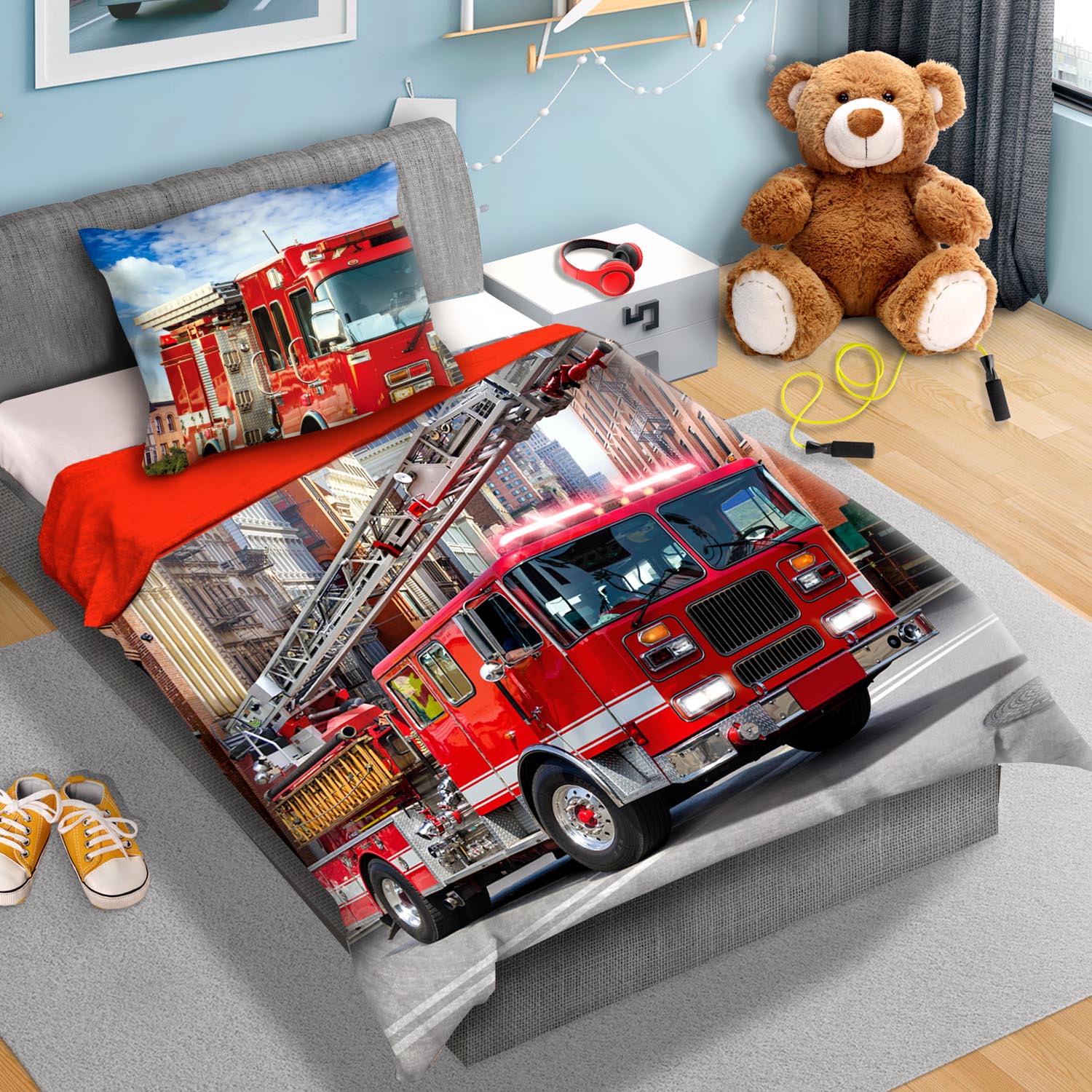 Pościel bawełna 160×200+1p70x80 Wóz Strażacki